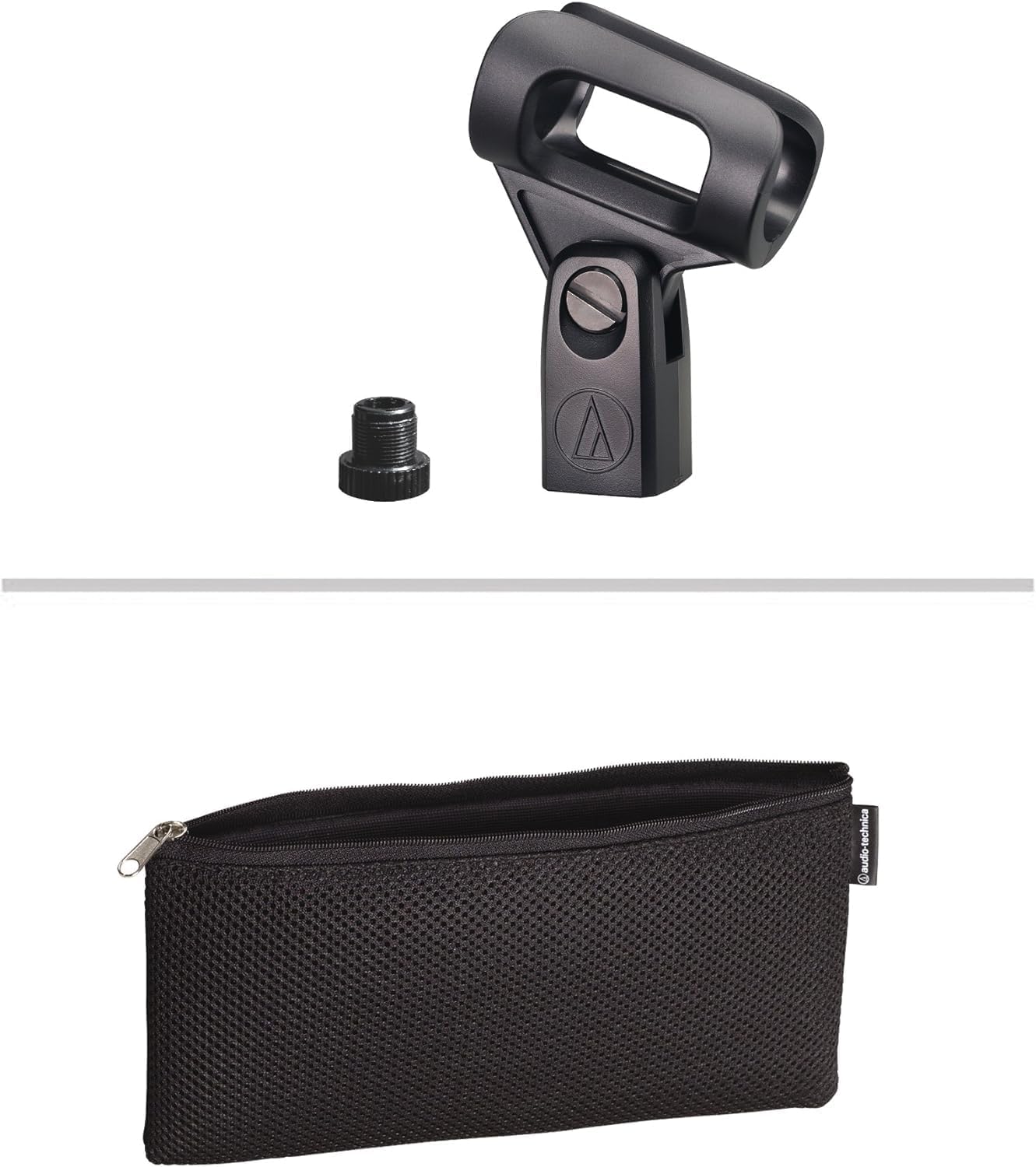 Extended frequency response for optimal vocal reproductionUnidirectional dynamic element designRugged all-metal constructionHi-ENERGY neodymium magnet for improved output and transient responseSoft-touch finish for a secure, comfortable gripSilent on-off operation thanks to MagnaLock switch designCorrosion-resistant contacts from gold-plated XLRM-type connectorsIncludes AT8470 Quiet-Flex stand clamp, 5/8″-27 to 3/8″-16 threaded adaptor, protective pouch.