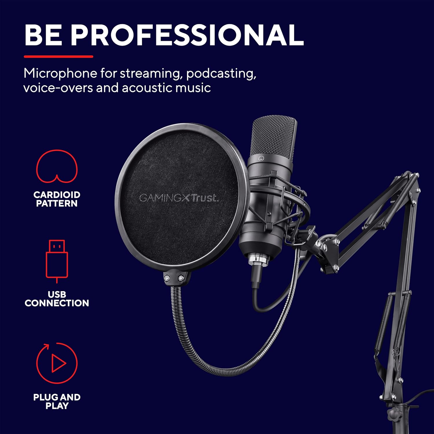 PLUG AND PLAY – The Trust Emita Plus Streaming Microphone has a digital USB connection; Simply plug in the 2m USB cable to your PC and laptop to start streaming or recording