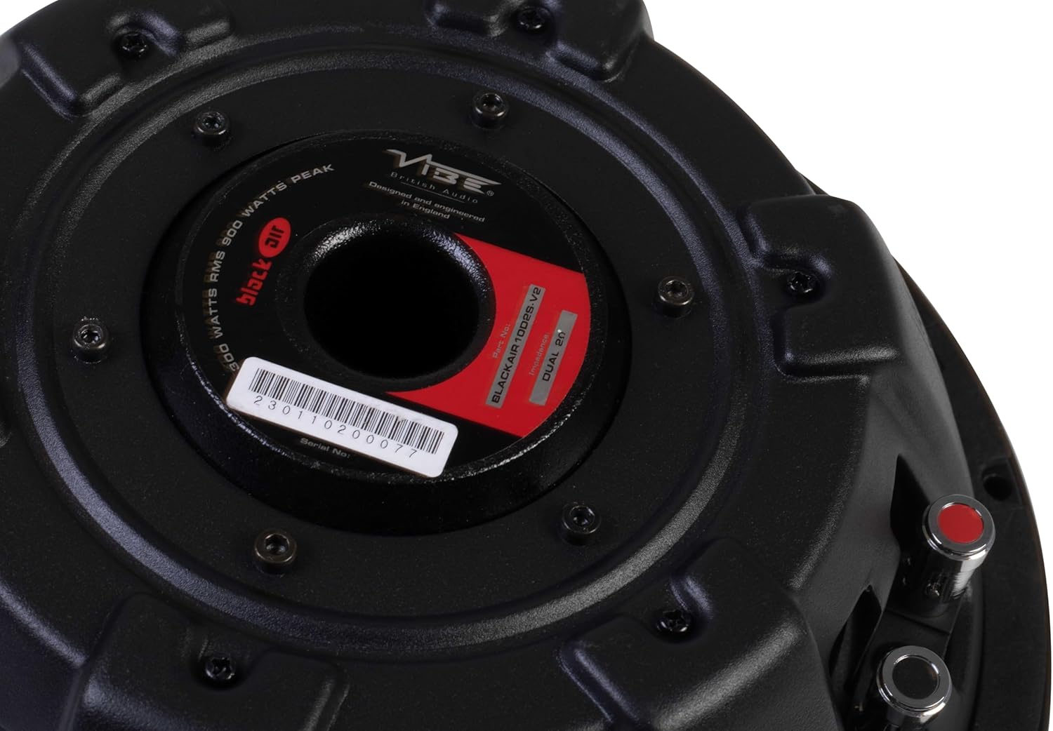VIBE Audio presents our products in the Blackair Range with out New Ultra Slim subwoofers These latest subwoofer have been engineered with space saving and performance at the forefront of development. Often space is the limiting factory in modern vehicles and can make adding bass which we know ist he life and soul of the music very difficult. Our Blackair slimline subwoofers have been designed to give you amazing bass reproduction even from the tightest of spaces Avaliable in 10 and 12 inch models, our slimline subwoofers are ultra slim measuring under 3.1:in depth making them easy to fit in custom enclosure where space is limited, this paired with high quality magnets, a unique basket design which encloses the magnet inside with a specially designed spider platform to enhance performance despite its lack of depth. A high quality but lightweight 2.5” voice coil is used capable of 300 watts RMS on the dual 2ohm set up. Woven tinsel leads, PC spiders, light weight foam surround and a robust PP dust-cap make up the soft-parts, this engineered combination makes for a highly efficient subwoofer with great accuracy when it comes to bass reproduction. The slimline nature allows both 10 and 12 inch woofers to be installed into enclosures under 1 cubic foot of volume!Slim, Elegant and designed for performance – The New Blackair Slimline subwoofers